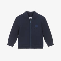 Green organic cotton zip-up hoodie for baby boys by Timberland, made in soft, comfortable jersey. It has an exposed, navy blue zip fastening and a popper-fastening patch pocket on the chest, with a Tree logo badge for brand appeal.