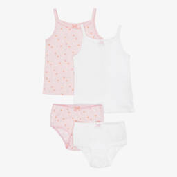 Grey marl vest and boxer shorts set for boys by Italian luxury label Versace. Soft and comfortable, both pieces are made in gently ribbed cotton jersey. The house's archival 90s vintage logo is featured on the chest and on the elasticated waistband for designer appeal.