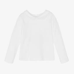 Pale blue cotton top for boys and girls by traditional Spanish brand Babidu, made in soft, comfortable jersey. It has a classic Peter Pan collar and easy-to-use popper fastenings on the back.