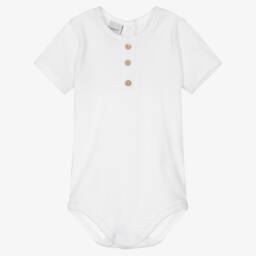 Sweet white knitted bonnet for baby boys and girls by Babidu. This classic and timeless style is made from soft cotton with intricate cable knit detail. The adjustable strap fastens under the chin with a tone-on-tone button, ensuring a secure fit.