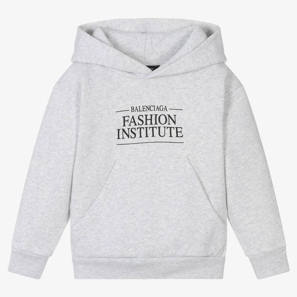 Grey marl hoodie for boys and girls, by luxury designer Balenciaga. Sportswear meets luxury with this cotton jersey hoodie, printed with the brand's black 'Fashion Institute' logo on the front and back.