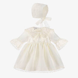 Exclusive to Childrensalon and ideal for special occasions, a beautiful navy blue dress for baby girls by classic British brand Beatrice & George. It is made in super soft velvet and traditionally styled with pretty puffed sleeves, white lace and velvet ribbon trims. Fully lined in cotton voile for comfort, it fastens with satin-covered buttons and a satin sash around the back that ties in a bow. It comes with useful, lined velvet bloomers to match.