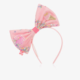A neon pink hairband for girls by Billieblush, adding a fun finish to any party outfit. Covered in soft twill, the flexible band has an oversized, iridescent organza bow on the top. Girls will especially love the colourful confetti that moves around inside.