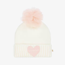 Cosy pink and blue beanie hat for girls by Billieblush, made in a soft ribbed chunky knit. Ideal for keeping warm, this hat has an appliqué with colourful glittery hearts and embroidered LOVE on the front. There is a yellow mesh pom-pom adding an extra pop of colour.