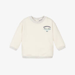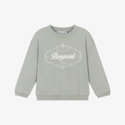 A beautiful sweatshirt for girls by luxury French label Bonpoint, in a pastel green and white marl shade. Made in comfortable cotton jersey, it has a beautiful beaded 'Aloha' design with embroidered hibiscus flowers, ideal for a tropical holiday vibe. The designer's script logo is also embroidered on the front, adding a discreet branded touch.