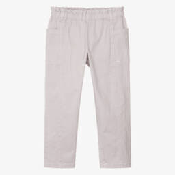 Girls ivory wide-leg jeans by Bonpoint, made in soft cotton denim. Designed with stylish patch pockets and contrast stitch detailing, these casual trousers have an adjustable waistband for a comfortable fit. For designer appeal, the brand's signature cherry logo embroidery and a branded patch can be seen on the back.