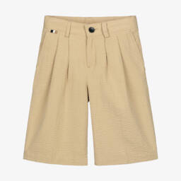 A pair of cool and comfortable beige Bermuda shorts for boys by BOSS. Made in soft smooth fabric, these stylish shorts have an embroidered Double B monogram for a designer finish.