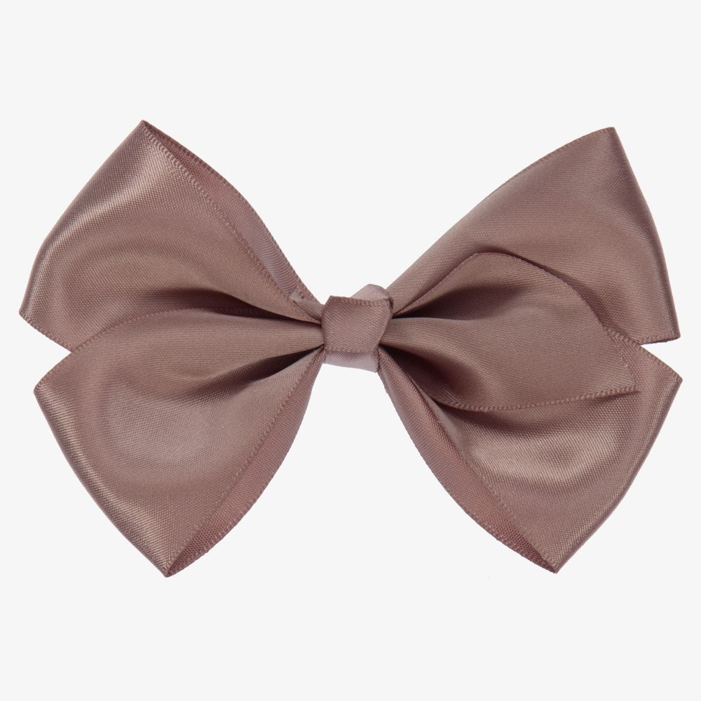 Girls brown bow hair clip by Bowtique London. Handmade, it has a soft satin ribbon decoration set on a slide-in metal clip.
