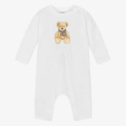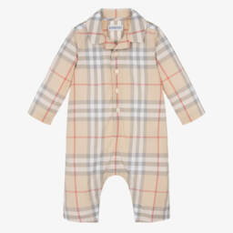 Cosy and comfortable for baby boys and girls, this quilted romper is by British label, Burberry. Designed with the brand's signature Archive beige Vintage check trims and a white logo print on the chest, it makes an instant statement. This cosy onesie is made in soft organic cotton jersey and fastens easily with poppers on the front.