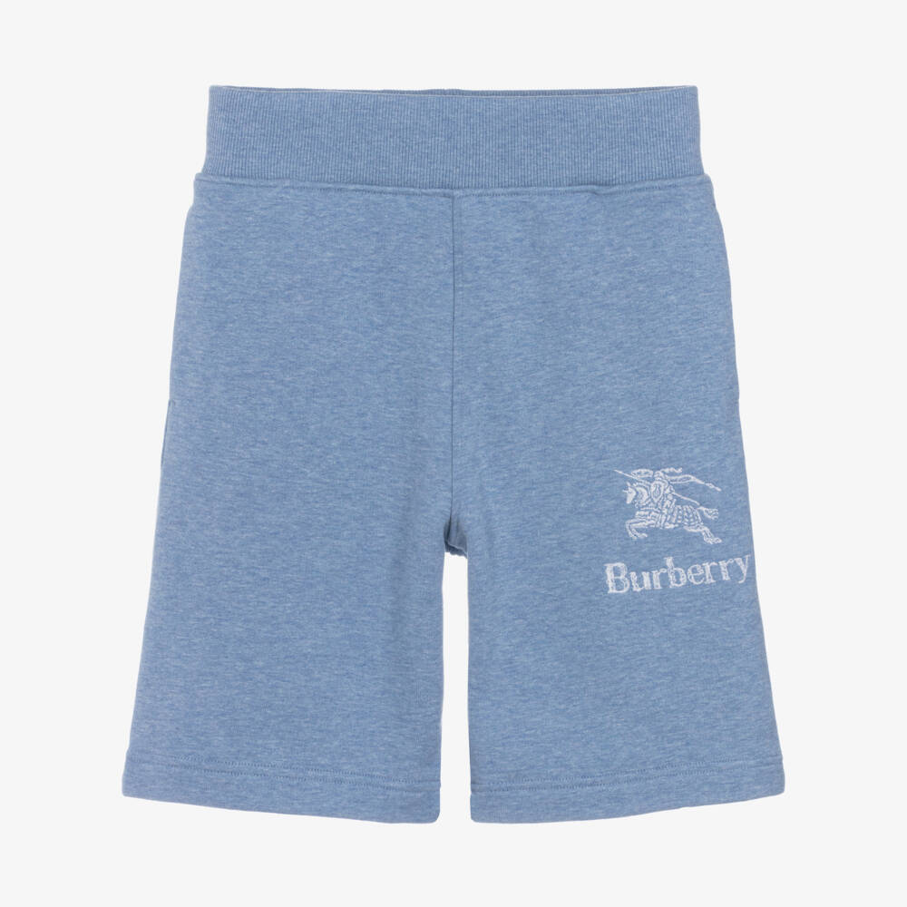 Great for a relaxed look, these blue marl shorts for teen boys are by luxury label Burberry. Instantly recognisable, they are embroidered with a white 'sketch-style' Equestrian Knight Design and logo lettering for a distinct finish. Made from soft mid-weight cotton jersey, they have useful side seam pockets and a wide ribbed elasticated waistband.