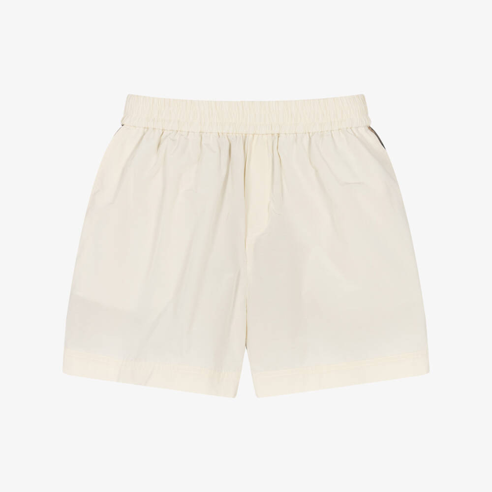 Teen girls ivory cotton blend shorts by luxury British brand Burberry, patterned with the designer's Vintage check in Archive beige on the back and on the pocket trims. They are loose-fitting and comfortable, with a stretchy, elasticated waistband for a good fit.