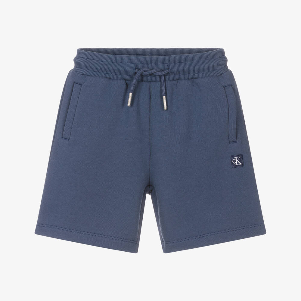 Dark blue shorts for boys and girls by Calvin Klein, made in a mid-weight cotton blend. Great for casual wear, these jersey shorts have a practical drawstring waist and front pocket detail. A Calvin Klein monogram badge can be seen on the leg for a signature touch.