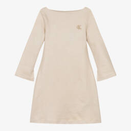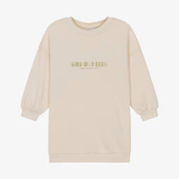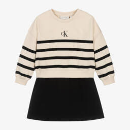 Girls black dress by Calvin Klein, ideal for elevating casual days with a touch of sparkle. Made in soft cotton blend jersey, it has a relaxed sweatshirt style and glittery CK logo motif printed on the chest.