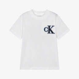 A lovely pair of white sandals for little girls from Calvin Klein. Made in durable faux leather with a textured rubber outer sole for improved grip, these strappy sandals fasten with velcro straps across the foot for a comfortable yet secure fit. Minimal use of silver glitter detailing and a metallic Calvin Klein monogram logo on the front gives a refined designer finish.