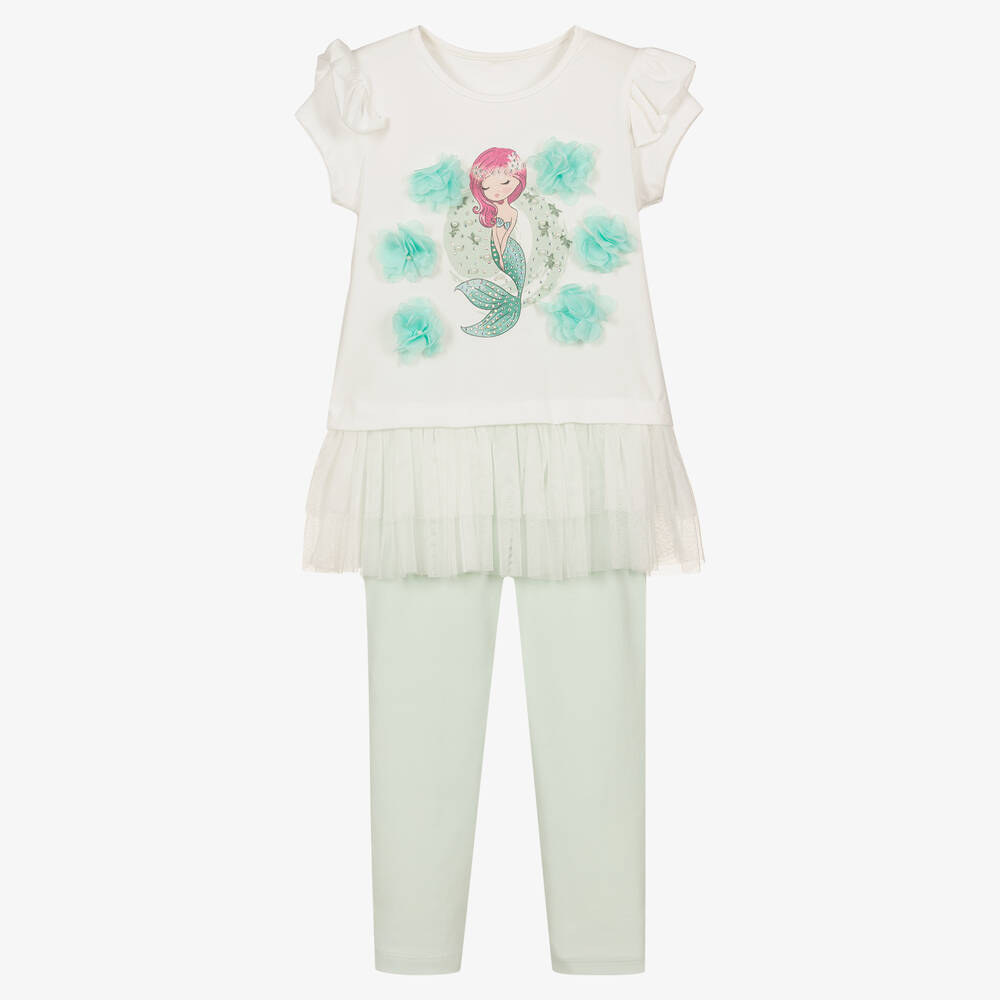 Girls White & Green Mermaid Leggings Set