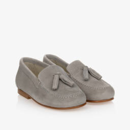 Exclusive to Childrensalon, a pair of metallic gold leather moccasin shoes for girls and boys from Children's Classics. Soft and comfortable, they are fully lined in leather with studded grips on the rubber outsole. Easy to slip-on, they have stitched rounded toes, and a bow detail.