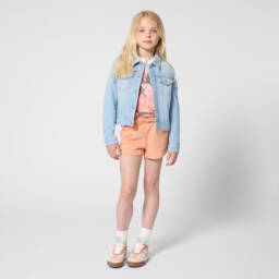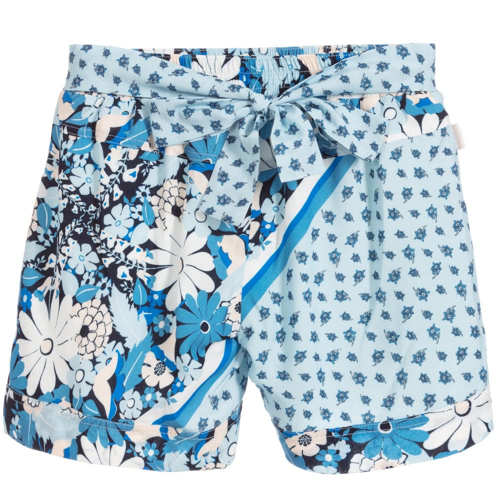 Directly inspired by the adult collection, a blue floral pair of shorts for girls by French fashion house Chloé. Beautifully made from soft viscose, they are fully lined for comfort and have a stretchy, elasticated waistband with a fabric tie.