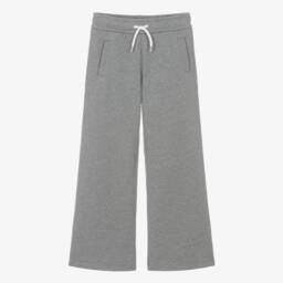 Casual and comfortable for girls, these beige marl wide-leg joggers are by luxury brand Chloé. Made in soft organic cotton jersey, they have an elasticated waist with a faux drawstring detail on the front. All four pockets are trimmed in white piping, with the designer's pineapple motif and signature Chloé logo embroidered on the back.