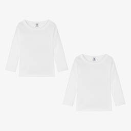 A white vest for girls by Diacar, made from soft cotton jersey with a pretty pointelle design. Simply styled, this long-sleeved top has a sweet scalloped neckline with a satin ribbon bow trim.