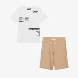 Casual and comfortable for boys, this black and light grey marl cotton shorts set is from DKNY. The pieces are printed with bold logo branding for a coordinating look. The short-sleeved tee is in a lightweight jersey with contrasting white trims. The mid-weight jersey shorts have a drawstring waist for a better fit and useful side pockets.