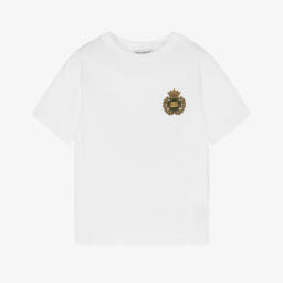Mini-me black T-shirt for boys by luxury Italian brand Dolce & Gabbana, made in soft cotton jersey. It features a white bandana print with white DG logos for a casual, on trend finish.
