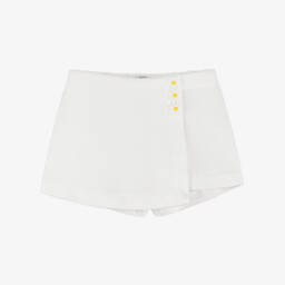 Cute off-white skort for girls by Dr. Kid, woven in lightweight cotton twill. Preppy and pleated, it has wooden-style buttons on one side and a concealed zip for easy dressing. There is an adjustable waistband for comfort.