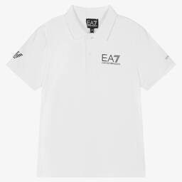 Off-white shorts for boys by EA7 Emporio Armani, made in soft cotton jersey with a drawstring waistband and practical side seam pockets. They have sporty logo panels on each leg and a square rubberised logo motif on one side, adding instant designer appeal to this everyday style.