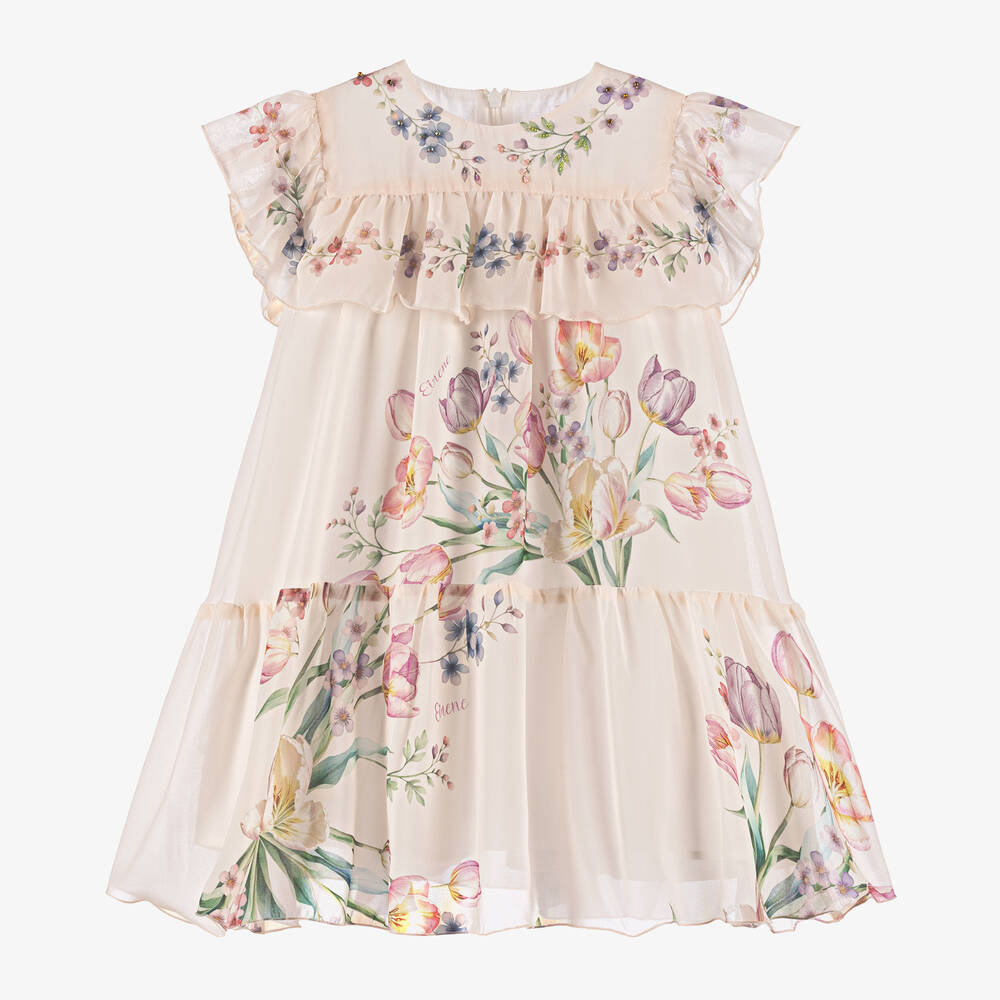 Girls Ivory Floral Chiffon Dress