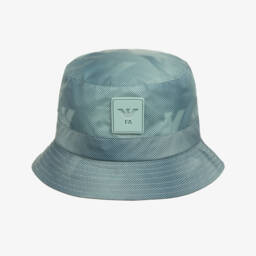 From Emporio Armani, an ivory, green and pink bucket hat for girls made in smooth cotton poplin. The all-over print incorporates the brand's iconic Eagle logo for a distinctive look, with an embroidered Eagle adding a signature finish.