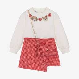 Girls Pink Pleated Shorts Set with Embroidered Logo