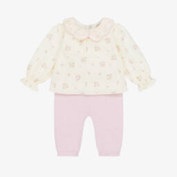 Bright red cotton leggings set for little girls by Everything Must Change, made in soft jersey. Fastening with a button on the back, the T-shirt has a sweet embroidered cherry on the chest and the comfortable leggings have a coordinating print for a complete look.