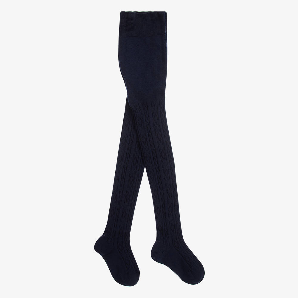 Girls smart navy blue cable knit tights from Falke. Made in a soft and stretchy wool blend, with a comfortable elasticated waistband, and reinforced stress zones for durability.