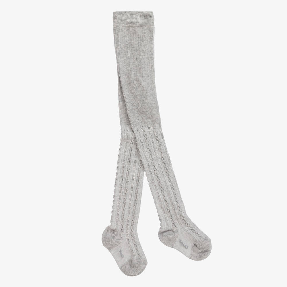 Girls smart light grey cable knit tights from Falke. Made in a soft and stretchy cotton blend, with a comfortable elasticated waistband and reinforced stress zones for durability.