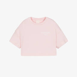 Mid-blue cotton T-shirt for boys, unmistakably by luxury brand Givenchy. It has the iconic 4G logo printed on the front in contrasting blue and rubberised white, as well as a bold logo printed across the back.