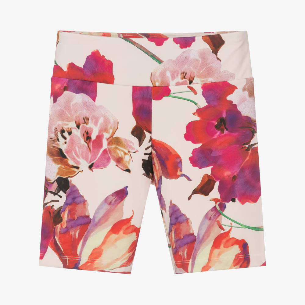 These pink, girly cycling shorts by Guess for teen girls are ideal for looking stylish and chic whilst working out. Patterned with a dark pink floral print all-over, they have a white logo print on the back of the waist for a contemporary upgrade. This item contains recycled plastic.