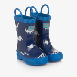 Lovely blue rain boots for girls by Hatley, that will brighten up any rainy day. Made from waterproof rubber, these boots have pretty pink & purple gradient trims and a reflective logo on the front. Lined in comfortable cotton jersey, they have removable insoles, non-slip rubber outsoles, and come with a pair of fun, heart printed socks.