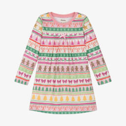 Patterned in a charming flower and butterfly print, this pink and green nightie for girls is by Hatley. Made in soft and comfortable jersey, it has short sleeves and a pretty frilled hem.