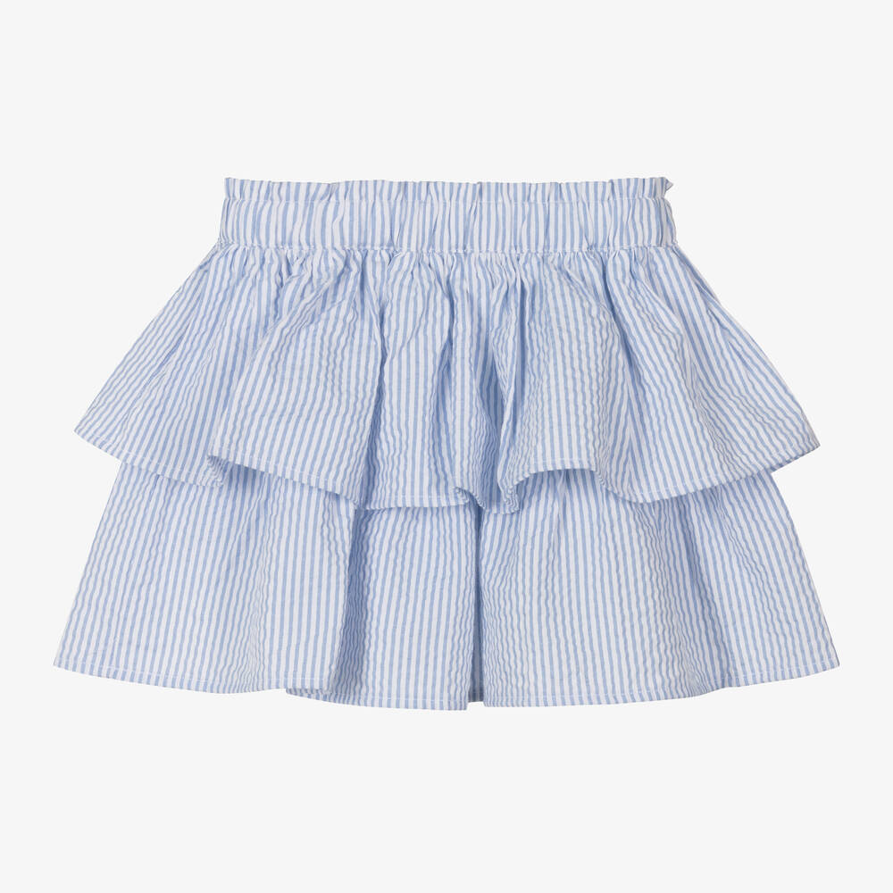 A lovely blue and white striped skirt for girls by iDO Baby, made in lightweight, cotton-blend seersucker. This pretty, tiered style is gently gathered and designed with a comfortable elasticated waistband.