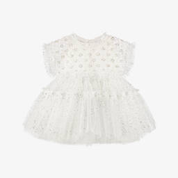 Girls White Tulle Shift Dress
