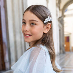 Two beautiful bow hair clips for girls from Junona, made in pale pink and green satin ribbons. A pretty finishing touch to an outfit, each bow has lovely long tails and is set on a metal crocodile clip with a braided trim for added comfort on the hair.