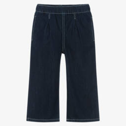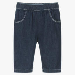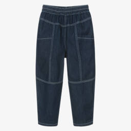 Mid-wash blue jeans for little boys by luxury brand KENZO KIDS, made in non-stretch cotton denim. These casual trousers feature front and back pockets in contrasting blue denim, with distinctive KENSO PARIS logo embroidery. The waist is elasticated for comfort and easy pull on.