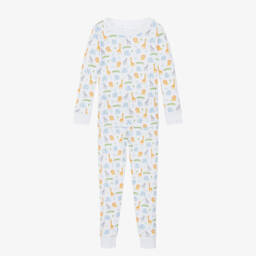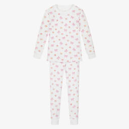 Girls White Pima Cotton Flamingos Surfs Up Pyjamas