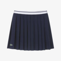 Navy blue skirt for girls by Lacoste, made in silky soft fabric. The skirt has a comfortable drawstring waistband and a pleated silhouette for comfort and movement. The green Crocodile logo on the front adds recognisable designer detail.