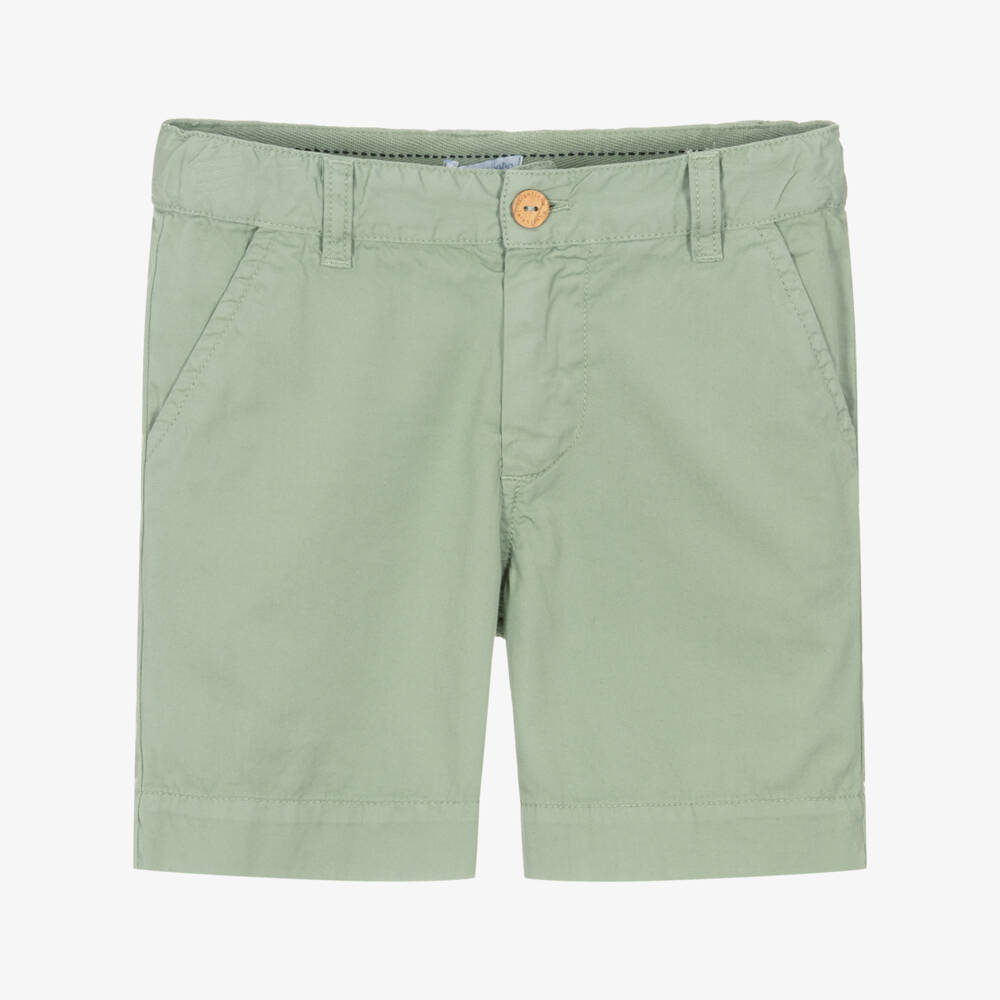 Boys Green Cotton Twill Shorts