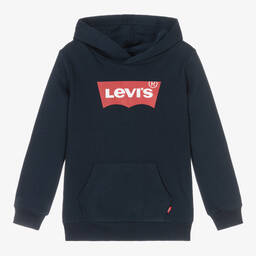 Royal blue jersey hoodie for boys by Levi's, with a small Batwing logo on the chest. Made in a soft cotton blend, it has ribbed trims and a practical pouch pocket, making it a comfortable and stylish choice for layering.