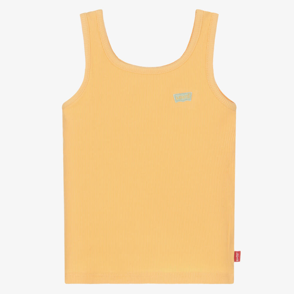Girls yellow vest top by Levi's, great for wearing on warm days or for layering. Made in soft, ribbed cotton, the brand's signature Batwing logo badge is on the chest in green, for an instantly recognisable look.