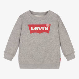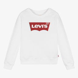 Red sweatshirt for boys and girls by Levi's, made in soft and comfortable cotton jersey with a fleecy inside. Ideal for casual days, it has the brand's iconic batwing logo print on the front in red and for a signature designer finish, a logo tab is on one side seam.