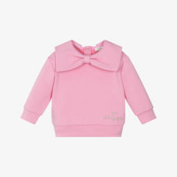 Girls Grey Cotton Sweatshirt With Bow Sleeves