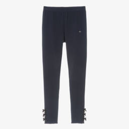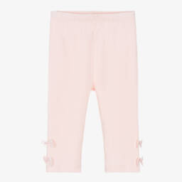 Lilac pink leggings for girls by Lili Gaufrette, made in soft and stretchy cotton jersey with an elasticated waist. These full-length leggings are embroidered on the ankle with the designer's name and their signature bow branding.