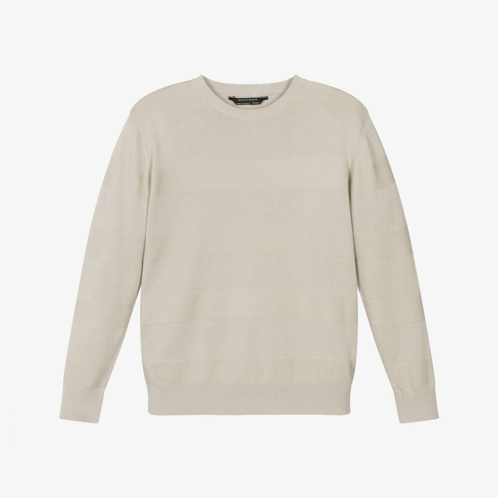 With a wide self-stripe in the weave, this knitted beige sweater for older boys is by Mayoral Nukutavake. Made in soft, lightweight cotton, it is ideal as a layering piece on cooler days.